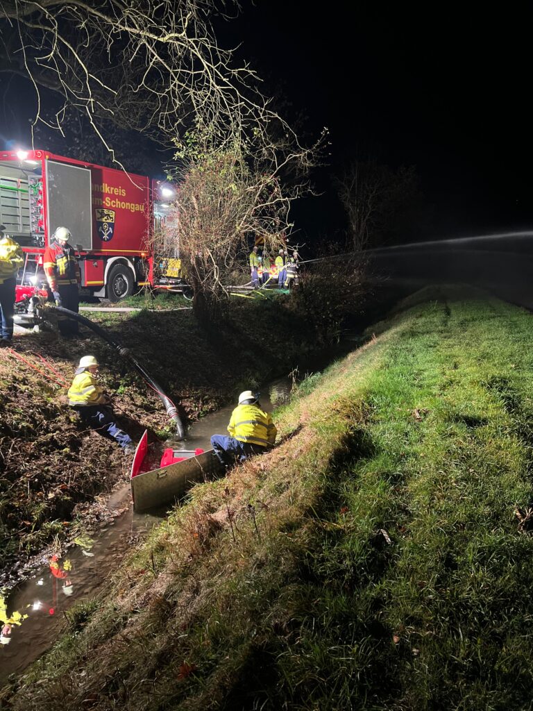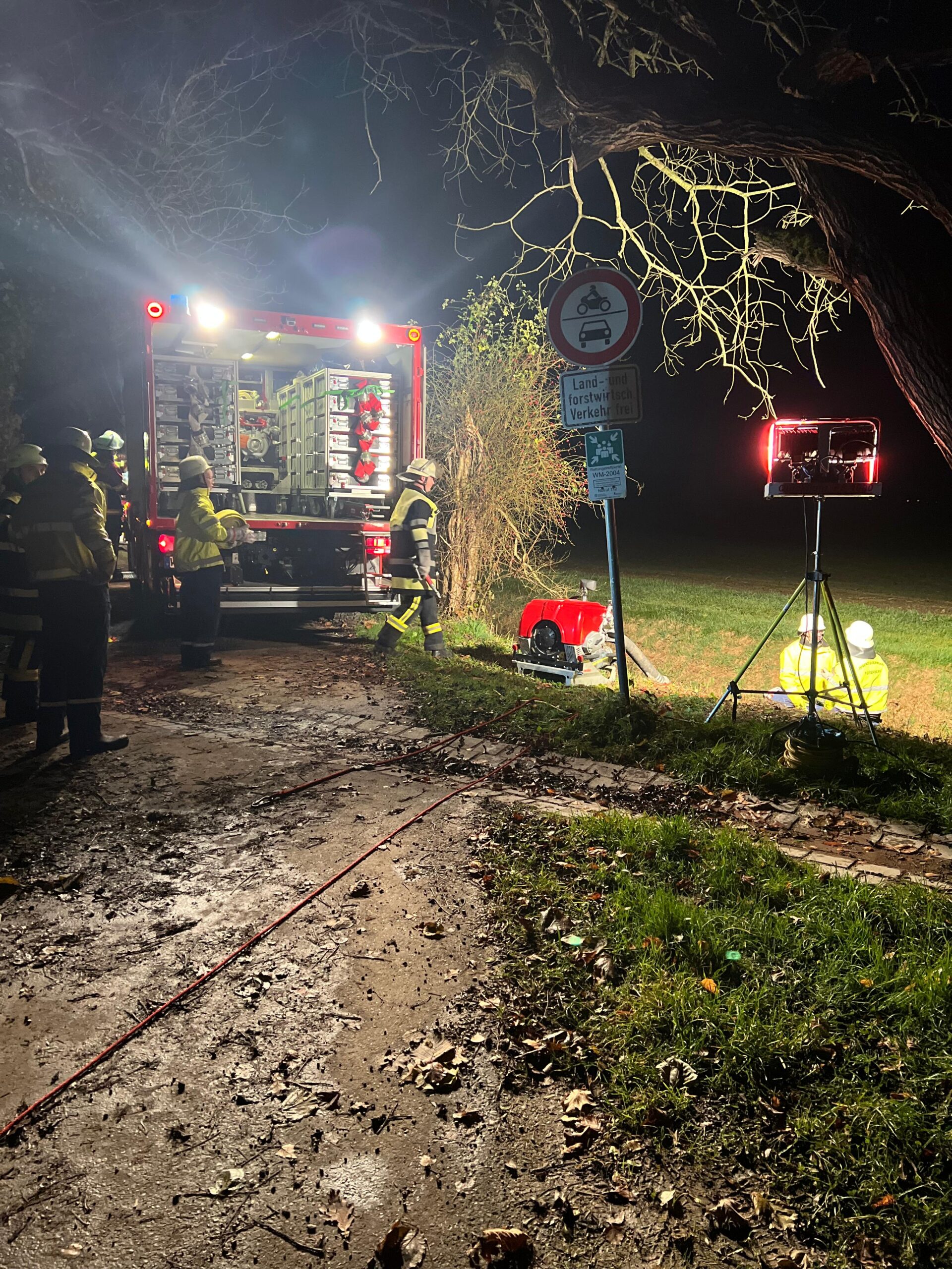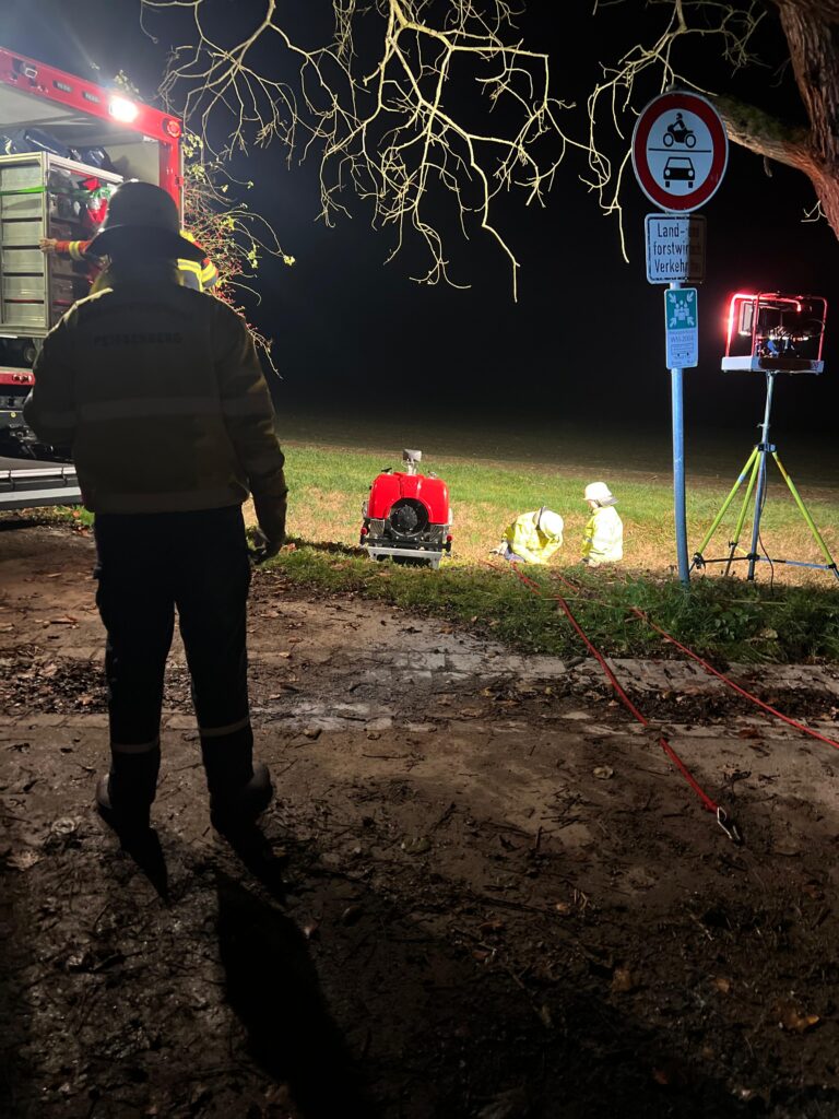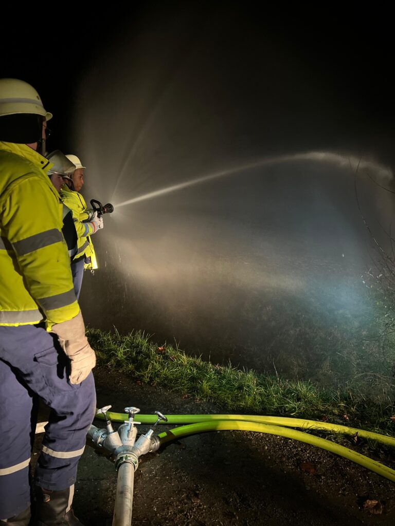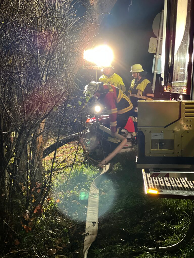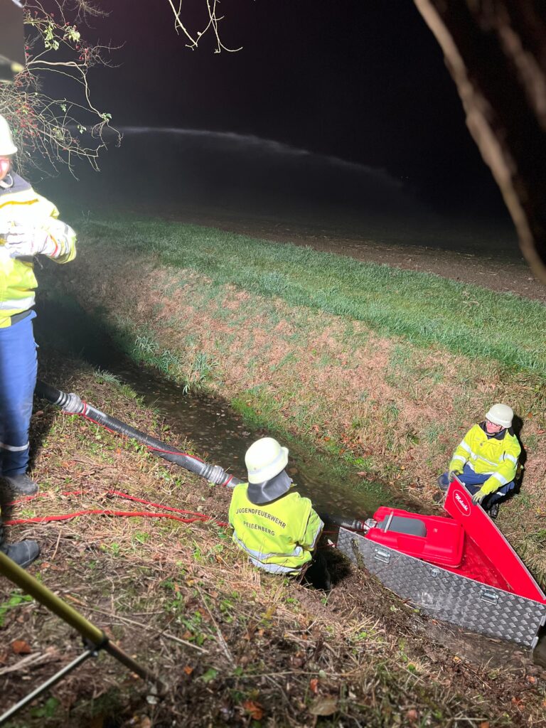 Heute am Montag den 10.11.25 war unsere Jugendgruppe am Bach im Einsatz! Gemeinsam haben wir das Ansaugen mit dem Flachsauger, das Anstauen eines Baches sowie den Löschaufbau geübt.